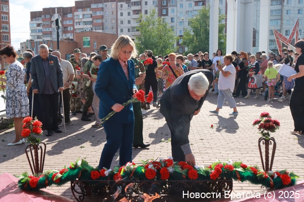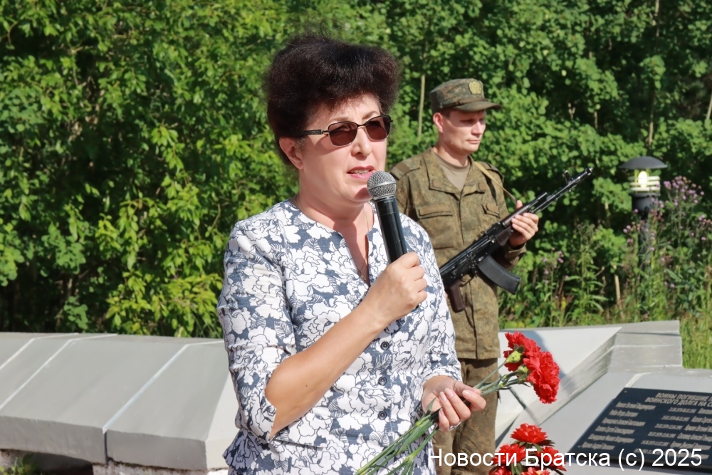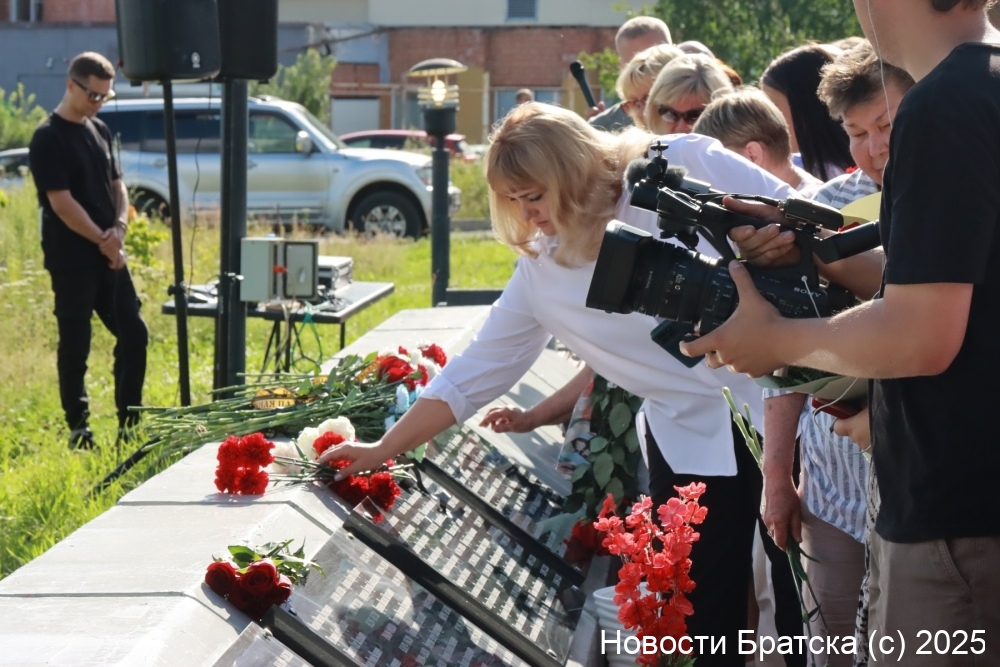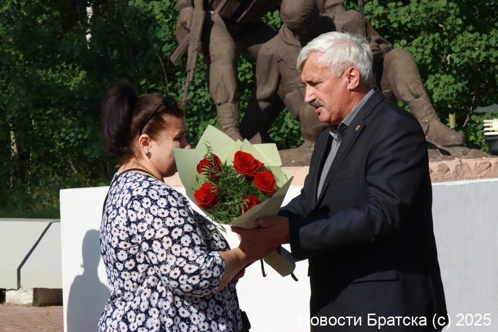 К мемориалу возложили гирлянду почета председатель Думы города Братска Ольга Янькова, заместитель мэра по социальным вопросам Марина Зубакова, военный комиссар города Братска Вадим Толстошеев, председатель городского Совета ветеранов Сергей Агафонов, а также депутат Думы города Братска и участник СВО Денис Шепель.
