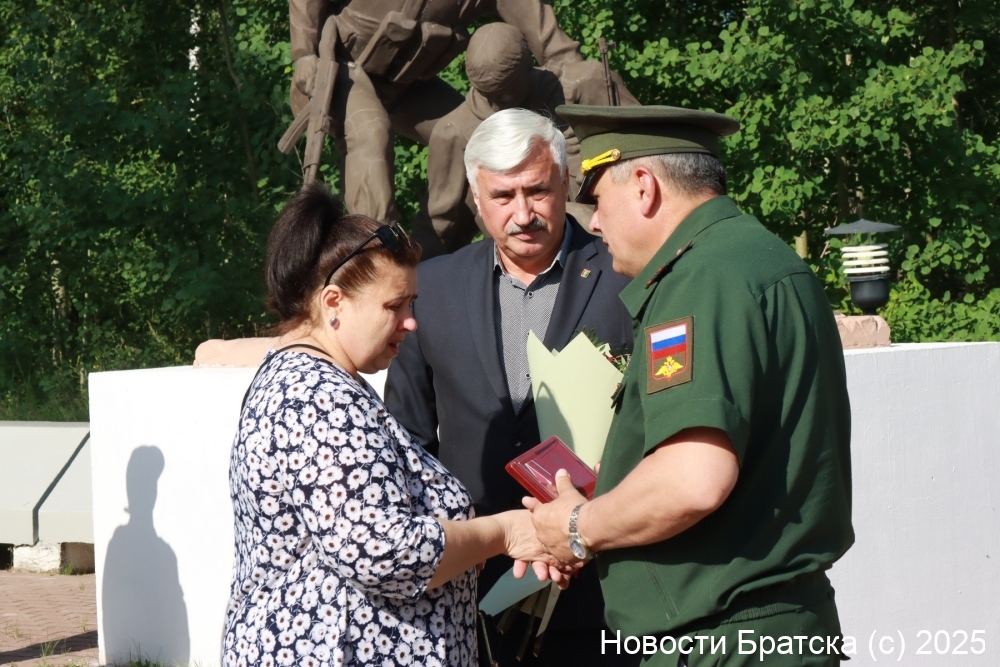 Орденом Мужества посмертно были удостоены Пётр Сорока, Максим Хандурдыев, Егор Агеев и Михаил Байкалов. Братчанин Владислав Шадрин посмертно награжден Медалью Жукова за отвагу и личное мужество. Слова глубочайшей благодарности и признательности прозвучали в адрес родителей, воспитавших героев.