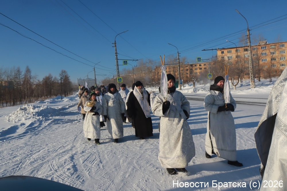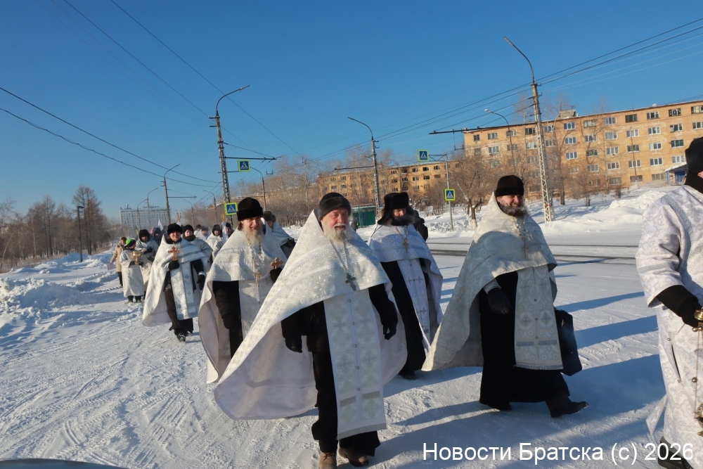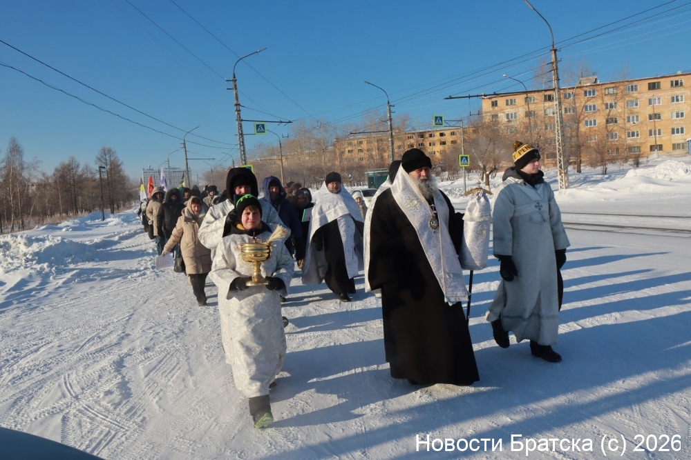Крестный ход начался в 13.00 от храма в честь Богоявления Господня. Участники шествия прошли по улице Обручева к купели на заливе. Здесь был совершен чин Великого освящения воды. Епископ Братский и Усть-Илимский Константин поздравил всех присутствующих с праздником Святого Богоявления.