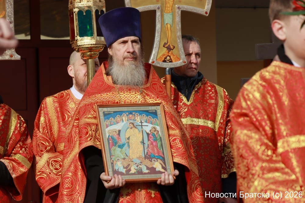 — У нас был небольшой крестный ход по нашему Братску, но выход из храма и движение на улицы — это уже символ того, что мы не боимся, что мы должны идти к каждому человеку, просвещать его, давать силы на преодоление трудностей. Самое главное — вести человека к спасению, поэтому сегодня мы вместе воздвигаем воскресшего Христа: Христос воскресе.